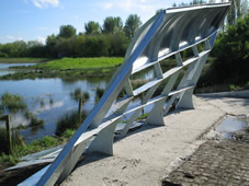 the pylons within reclaimed wetland environment. The steel is reminiscent